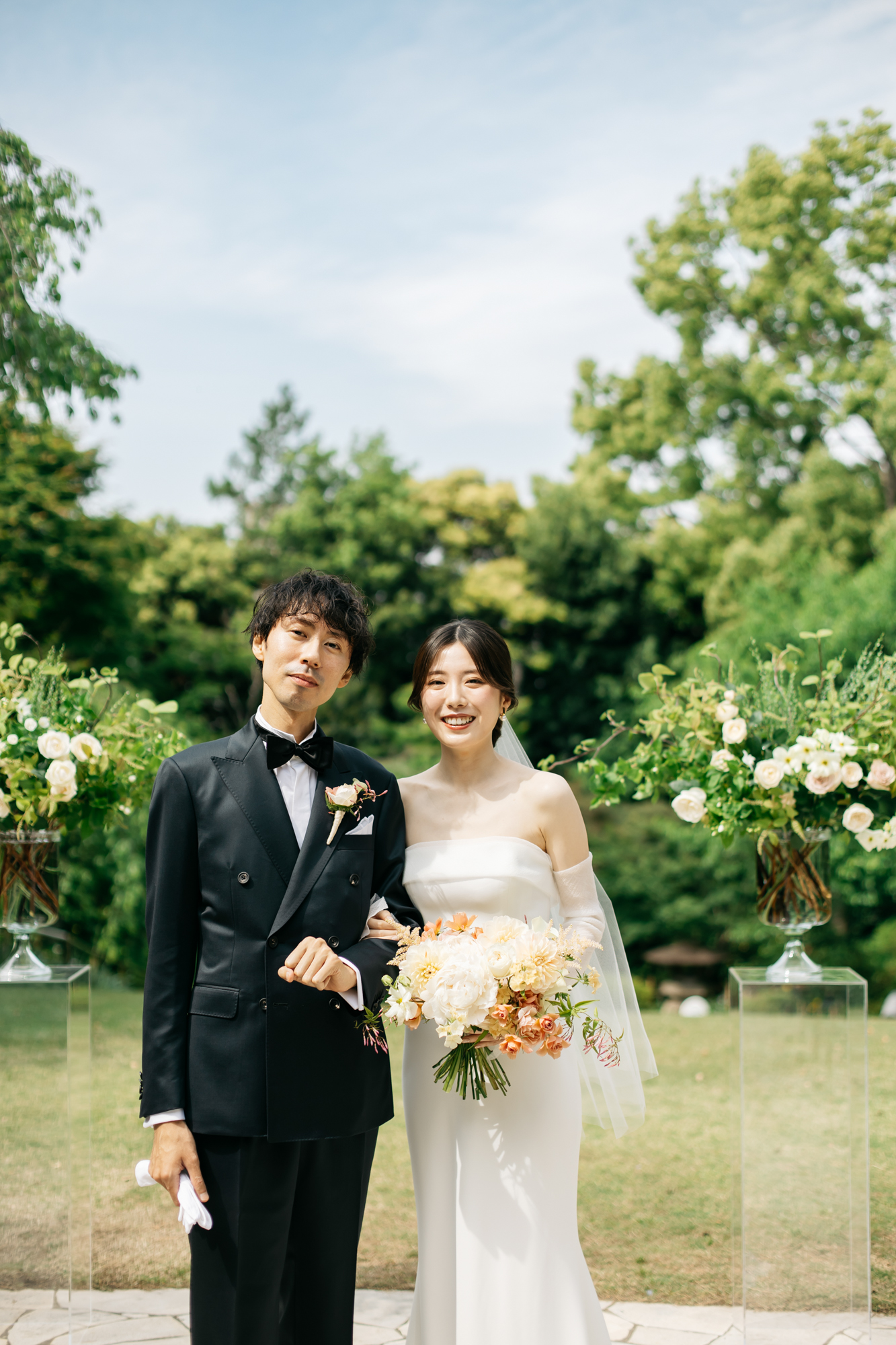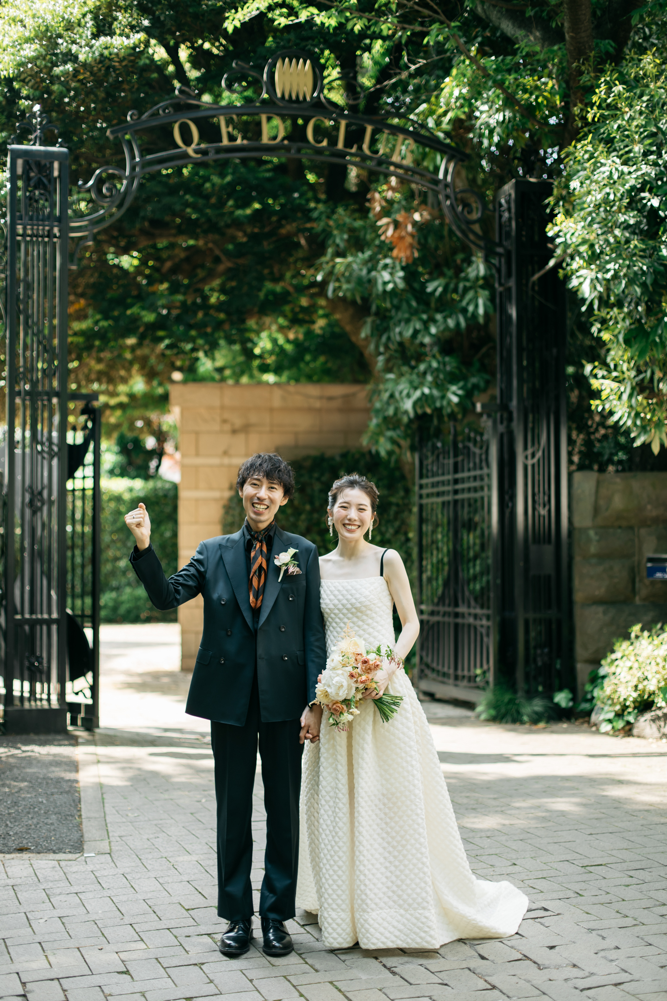 Q.E.D.CLUBさんのガーデンの雰囲気、そして妻の選んだ2着のドレスにも非常にマッチしたコーディネートを組んでいただきました。