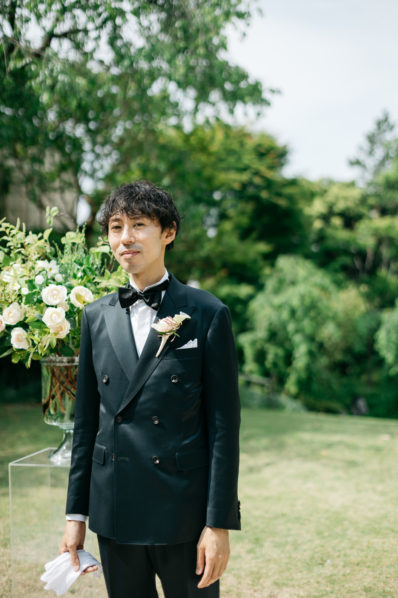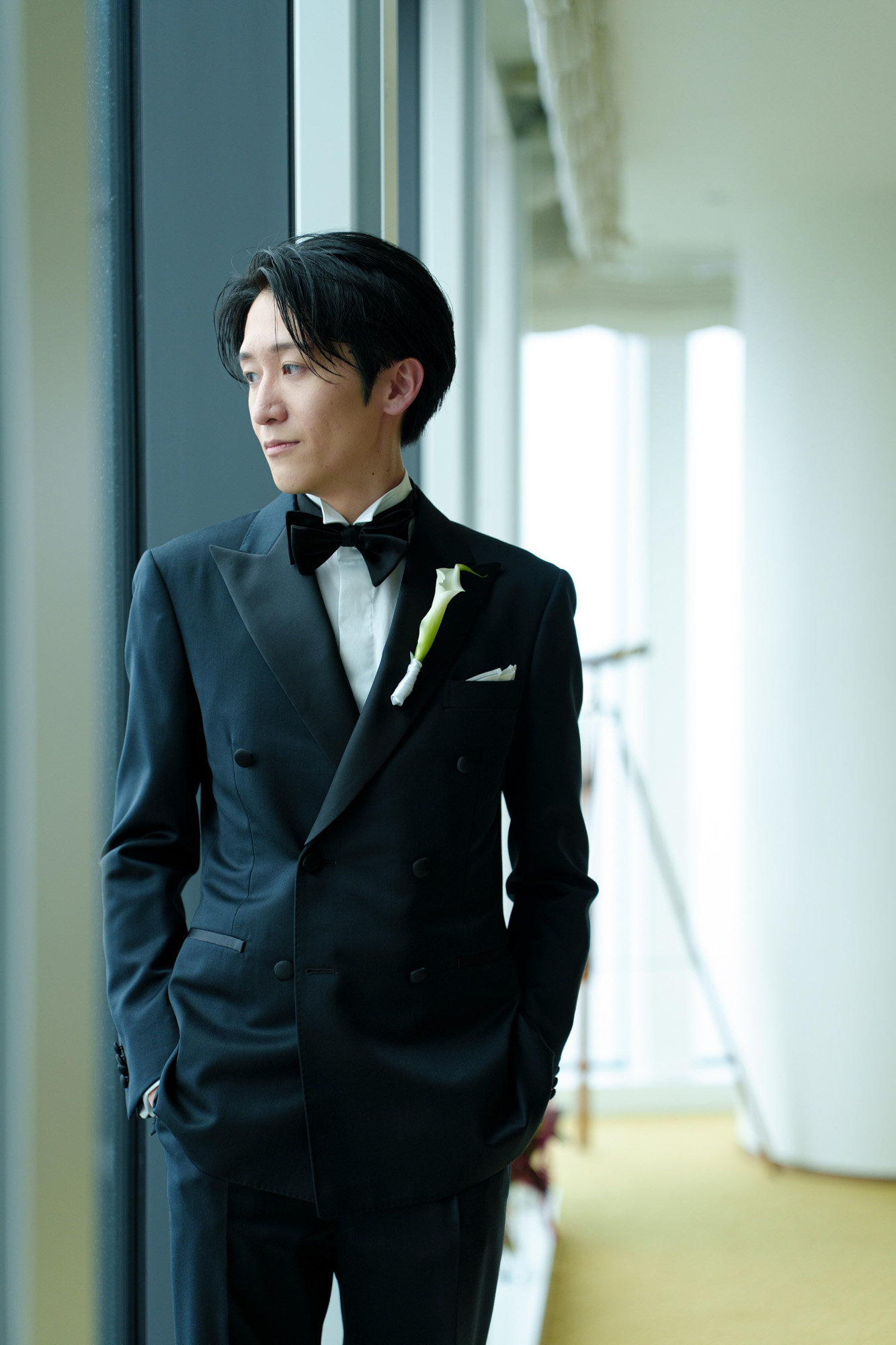 完成したタキシードを初めて着た時の高揚感は、今でも忘れられません。鎧のように体にぴったり纏われ、コンプレックスを自然に打ち消す、美しいシルエット。特別な日に相応しい、特別過ぎる衣装で、当日を120%楽しむことができました。