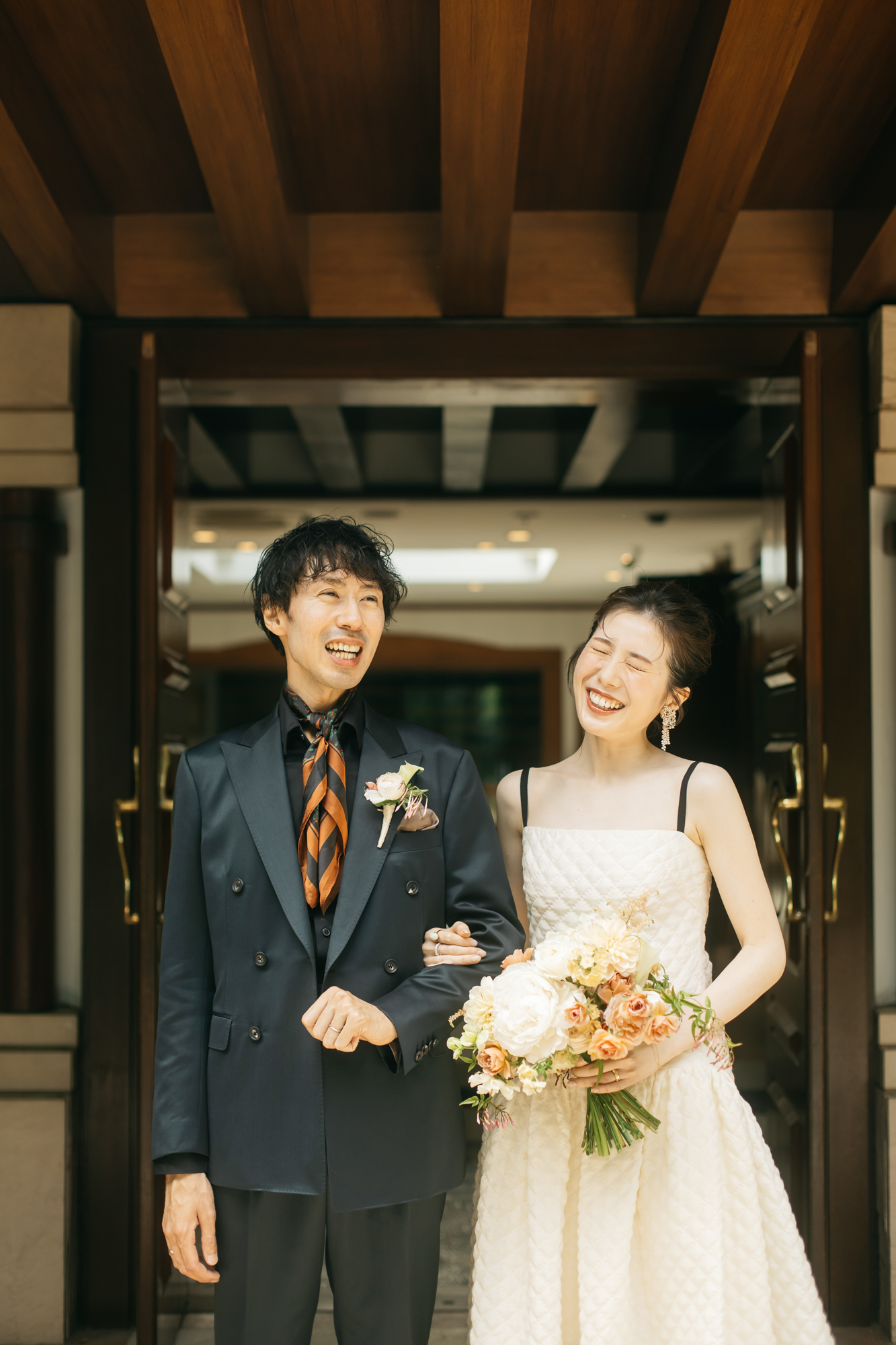 ここまで楽しく、ここまでこだわり、ここまで繊細に仕立てていただけたことに本当に感謝しております。結婚式当日は言うまでもなく、一緒に創っていく過程が、ひでさんにお願いしてよかったと最も強く思えた点でした。